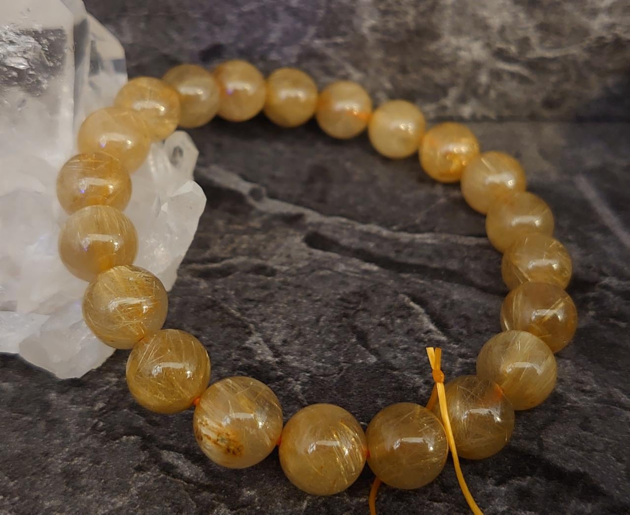 珠径9㎜ 手首回り(内周)約16㎝【金運の王様】金色の針と水晶がお金の流れをスムーズに。昇給、昇進、新しい収入源の発見など豊かさを現実のものとするためのエネルギーを与えます。
